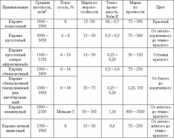| Керамический: плотный/пустотелый/пористый | 1,4―2,6/―/1,5 | 0,67―0,80/0,44―0,47/0,44 |
