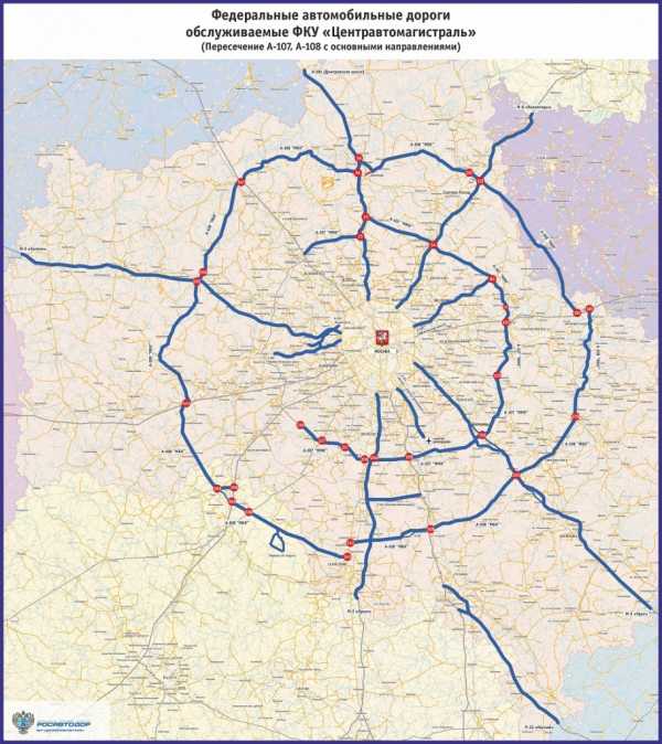 Общая протяженность трассы А-107 «Московское малое кольцо» составляет 347 км. В ведении ФКУ «Центравтомагистраль» находится участок от 0-го до 236-го км (границ «новой» Москвы). Нулевому километру так же соответствует пересечение с М-10, далее по часовой стрелке: пересечение с автодорогой А-104 Москва-Дмитров-Дубна — 25-й км, М-8 «Холмогоры» 54-й км, М-7 «Волга» – 103-й км, Егорьевское шоссе – 129-й км, М-5 «Урал» — 156-й км, М-4 «Дон» — 188-й км, Каширское шоссе – 189-й км, М-2 «Крым» — 204-й км, Старосимферопольское шоссе – 206-й км, а/д Подольск-Кресты — 217-й км, А-130 Москва-Рославль — 227-й км.