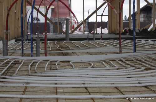 Монтаж водяного теплого контура, инженерных систем и непосредственно стяжки можно проводить уже под крышей построенного и утепленного дома, это позволяет проводить данные работы независимо от погодных условий равномерно распределяя финансовые затраты на дынные виды работ.