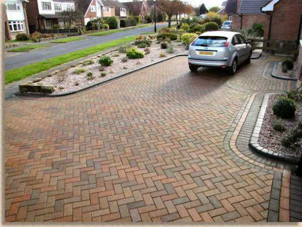 Работы по укладке тротуарной плитки проводят в местах, где большая проходимость или автомобильный проезд. Именно такой тип укладки обеспечит надежность и прочность при высоких нагрузках. Благодаря этому его используют на земельных участках частных домов и в черте города.