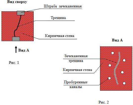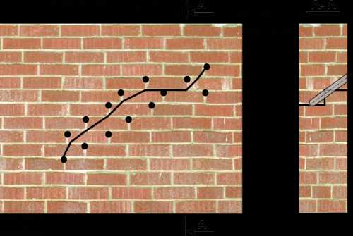 Схема заделывания сквозной трещины в кирпичной стене цементным раствором