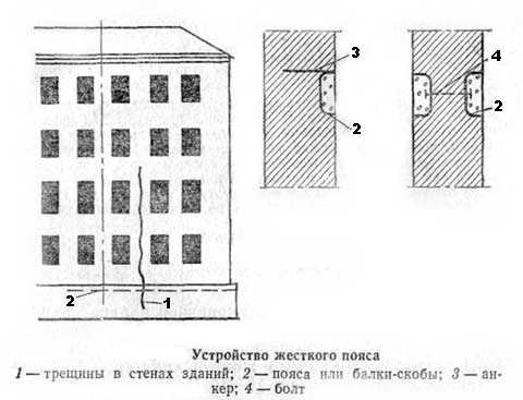 — применение напрягаемых вертикальных и горизонтальных металлических жестких и гибких поясов;