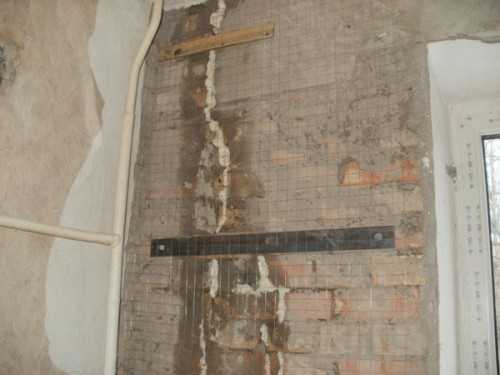 В отдельных случаях возможно применение металлической сетки, поверхностью которой после работ штукатурится.
