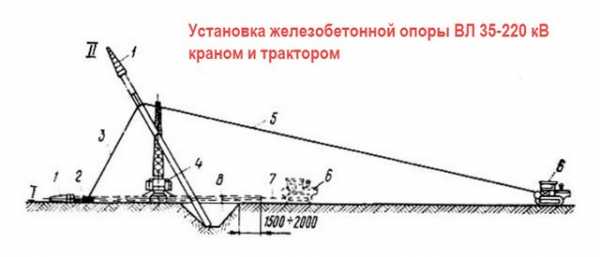 Опора привозится на место установки заранее и укладывается вдоль линии отвода. Центр тяжести опоры должен находиться в 1,5 метрах от ямы для опоры;