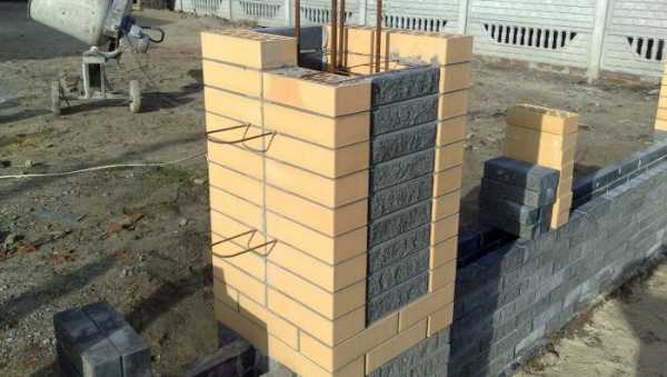 Столбы из кирпича сделать труднее всего, но и выглядеть они будут достойнее. Главное в кладке предусмотреть выступы и отверстия, которые будут удерживать плиты забора. Для уменьшения расходов на кирпич иногда опору выкладывают внутри пустой, а затем заливают туда бетонный раствор.