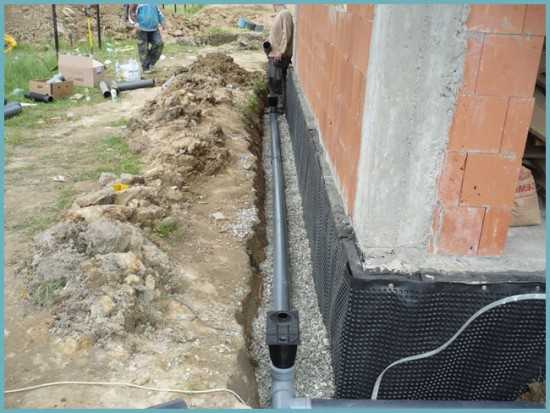 Поскольку атмосферные осадки постоянно воздействуют на фундамент нужно позаботиться о том, чтобы вода не останавливалась возле стен, а отводилась подальше. Для этого обустраивают дренаж, во время утепления.