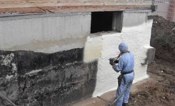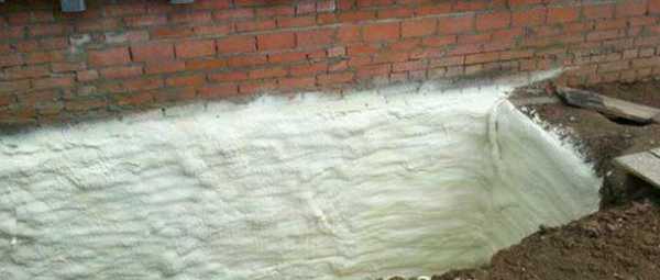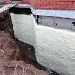 Утепление фундамента дома снаружи выполняют и при помощи жидкого утеплителя, который напыляется на основание при помощи специального оборудования и быстро застывает. Пенополиуретан способен хорошо защитить бетон от негативного воздействия, поскольку кроме, стандартных характеристик имеет ряд преимуществ: