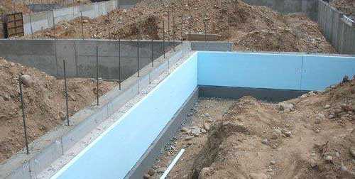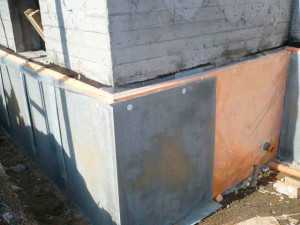 3. Потом нужно подождать, когда фундамент высохнет, провести очистку поверхности от пыли, нанести мастику битумную и рубероид, для гидроизоляции.