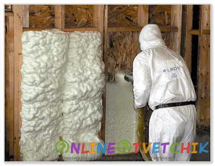 - Потом наносят пенополиуретан.