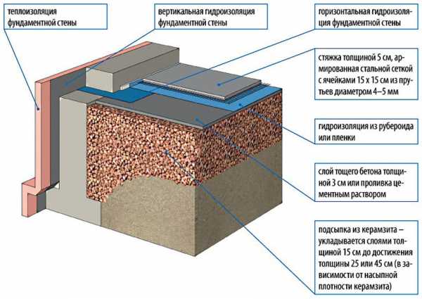 - Засыпают керамзит с уклоном от стены в 5 градусов.