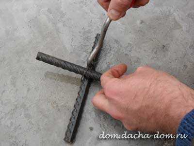 Извлекаем крючок — вязка арматуры выполнена. Кстити, сваривать перекрестия арматуры можно только у арматуры диаметром 25 мм и выше — иначе под нагрузкой араматура может обломиться. |