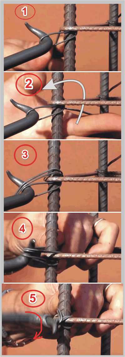 Этапы ручной вязки арматуры