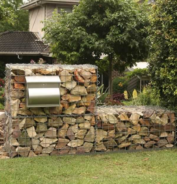 Это довольно оригинальные конструкции в виде длинных и плоских металлических коробов из прутьев, до краев заполненных каким-либо материалом.