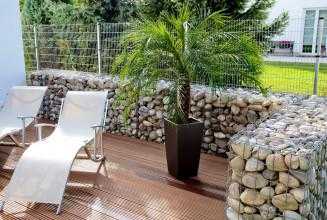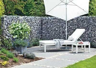 Изгородь из габионов обеспечит великолепную защиту от ветров и от слишком любопытных соседей. Кроме этого: