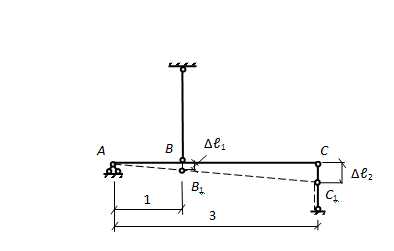 т. е. температурное удлинение стержня равно его укорочению под действием реакции RB, так как связи предполагаются абсолютно жесткими.