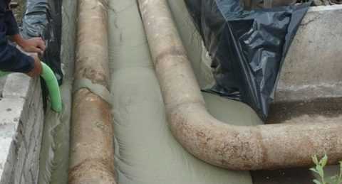 Заливка труб пенобетоном
