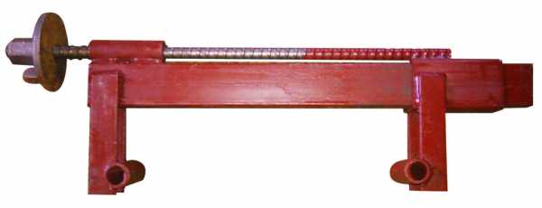Винтовой замок для строительной опалубки представляет собой металлическую планку, где с одной стороны закреплена неподвижная губка, а с другой – подвижная. Перемещение подвижной губки осуществляется за счет винтовой передачи. При вращении винта с барашковой головкой у неподвижной губки, подвижная губка скользит вдоль рейки, пока не упрется в профиль обвязочного контура и не зафиксирует его. Сила стяжки двух соседних щитов опалубки для монолитного строительства определяется силой затягивания винтовой пары.