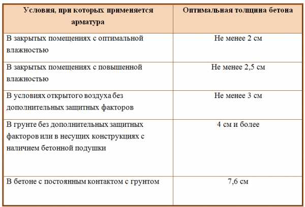 При неблагоприятных факторах внешней среды толщина защитного слоя бетона может отличаться: