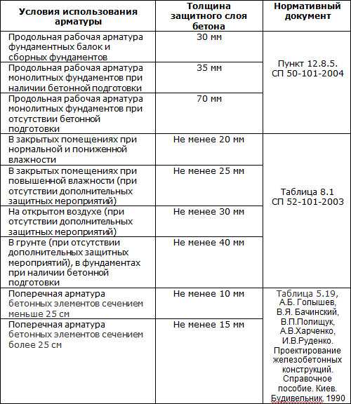 Защитный слой бетона для арматуры в фундаменте