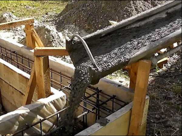 Заполнение опалубки бетонным раствором: острые края заполнителя – щебенки также способны повредить тонкое антикоррозионное покрытие арматуры