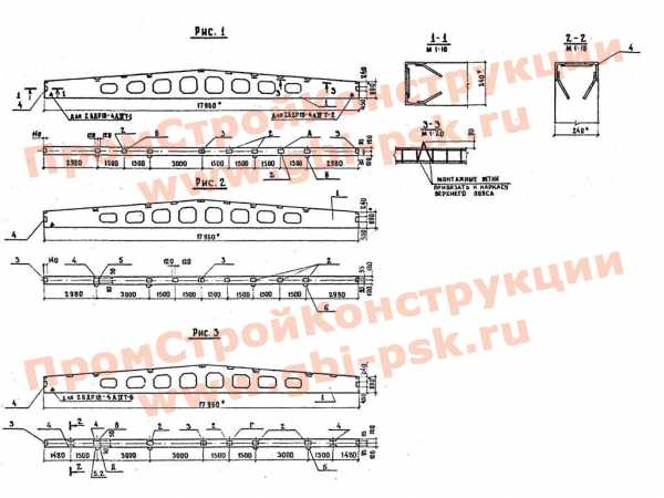 9.9. Типовые подстропильные фермы для зданий с плоской кровлей