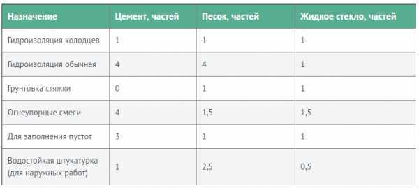 Цемент с жидким стеклом пропорция растворов