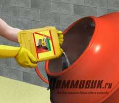 Предварительно добавка разводится с водой и вливается в сухую смесь.