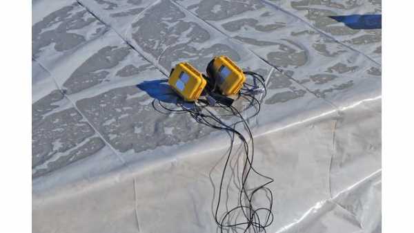 Специальными электронагревателями в виде матов обкладывают залитый подготовленным раствором участок. В раствор добавляют вещества для ускорения процесса схватывания и предотвращения кристаллизации воды. Этот способ хорош для прогрева больших ровных горизонтальных поверхностей в зимнее время.